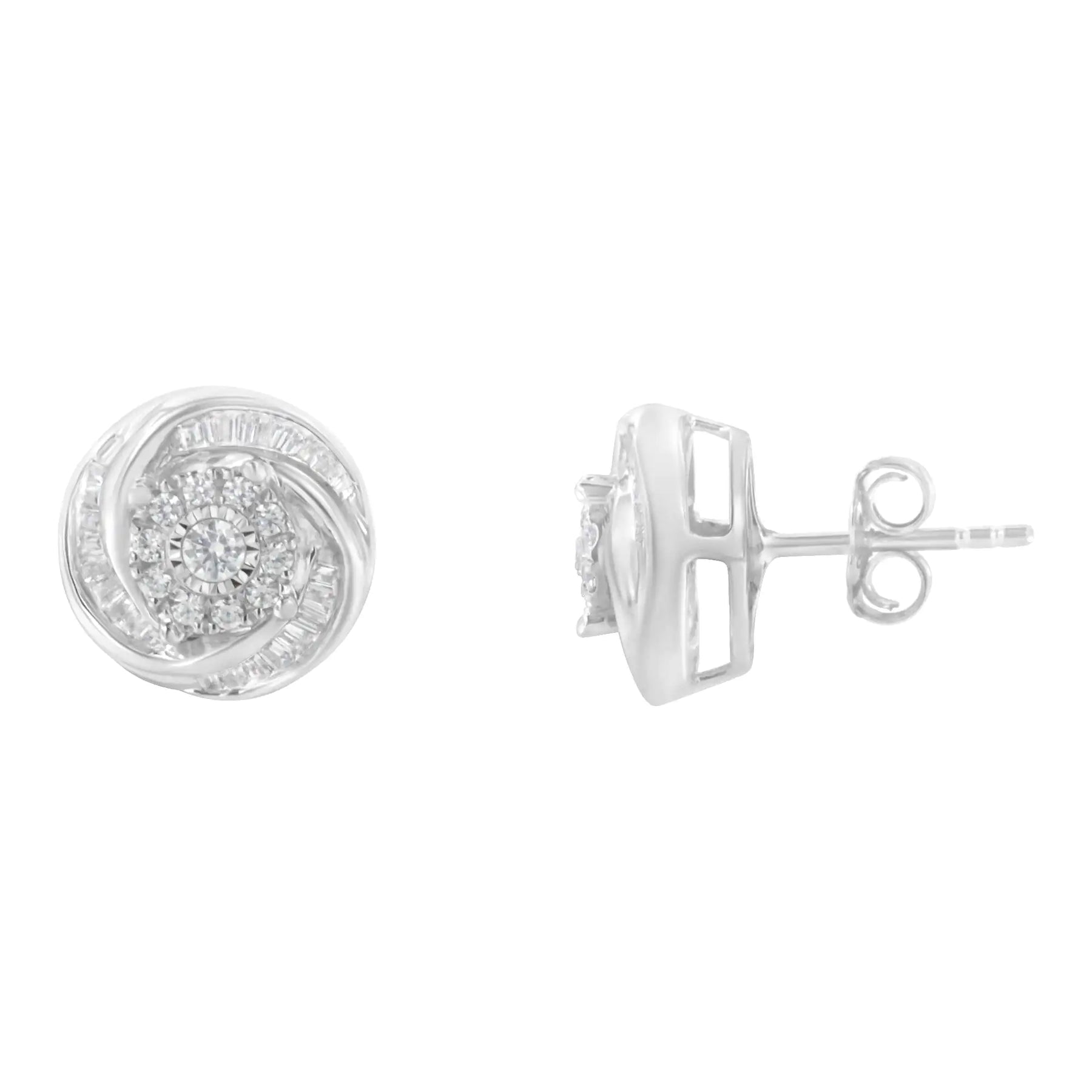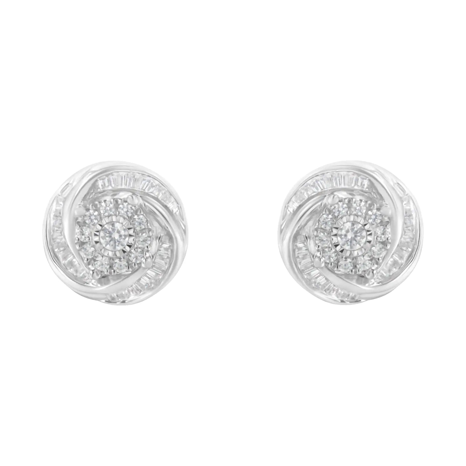 The Sterling Silver 3/4 Cttw Round Diamond Love Knot Earring is a timeless symbol of love and unity. Crafted from sterling silver, each earring features a classic love knot design set with sparkling round diamonds totaling 3/4 carat. The elegant knot work and brilliant diamonds add sophistication, making these earrings perfect for both everyday wear and special occasions. With secure backings for comfort, they are an ideal gift or a beautiful addition to any jewelry collection.